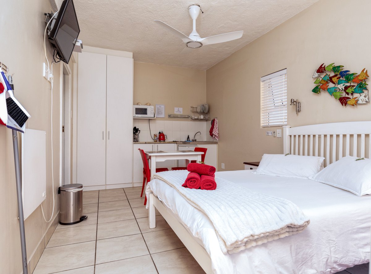 Hierdie eenheid akkomodeer 2 persone met een koningin grootte bed. Verder beskik die eenheid ook oor 'n volledig togeruste kombuis eenheid met yskas, 2 plaat stofie, mikrogolf oond en ketel. En-suite badkamer met stort. Eie braai- en kuier-area. Een toegewyde parkeerplek.