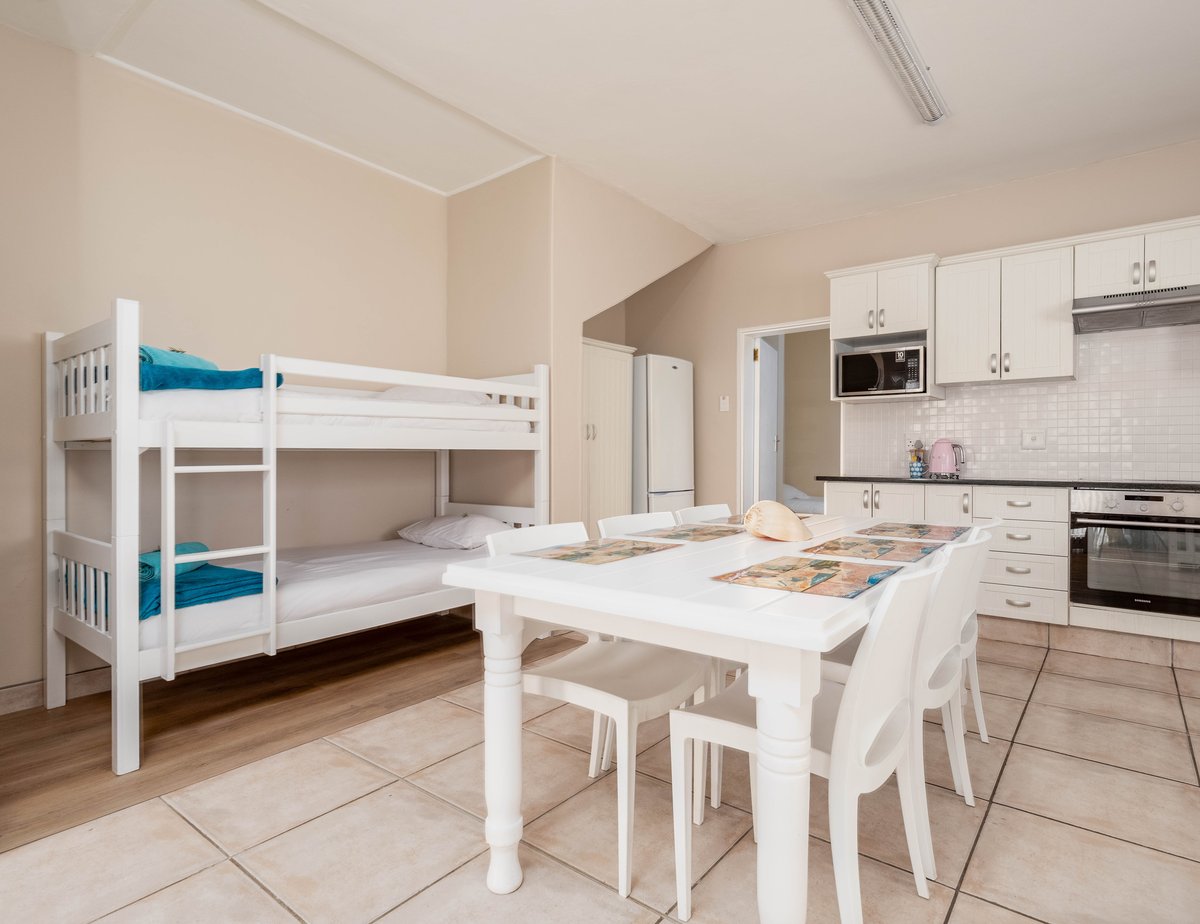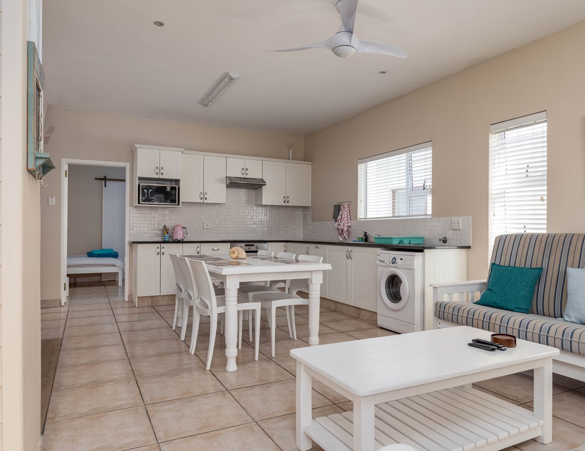 Hierdie eenheid akkomodeer tot 3 volwassenes en 2 kinders. Die slaapkamer het 'n dubbelbed en enkel bed en volledige en-suite badkamer met 'n bad en stort. Die oopplan leef area het n volledige kombuis met yskas, stoof, wasmasjien, mikrogolf en ketel asook sit gedeelte, eet gedeelte en n stapelbed. Privaat kuier- en braai-area. Onderdak parkering voor die eenheid agter 'n sekuriteitshek.